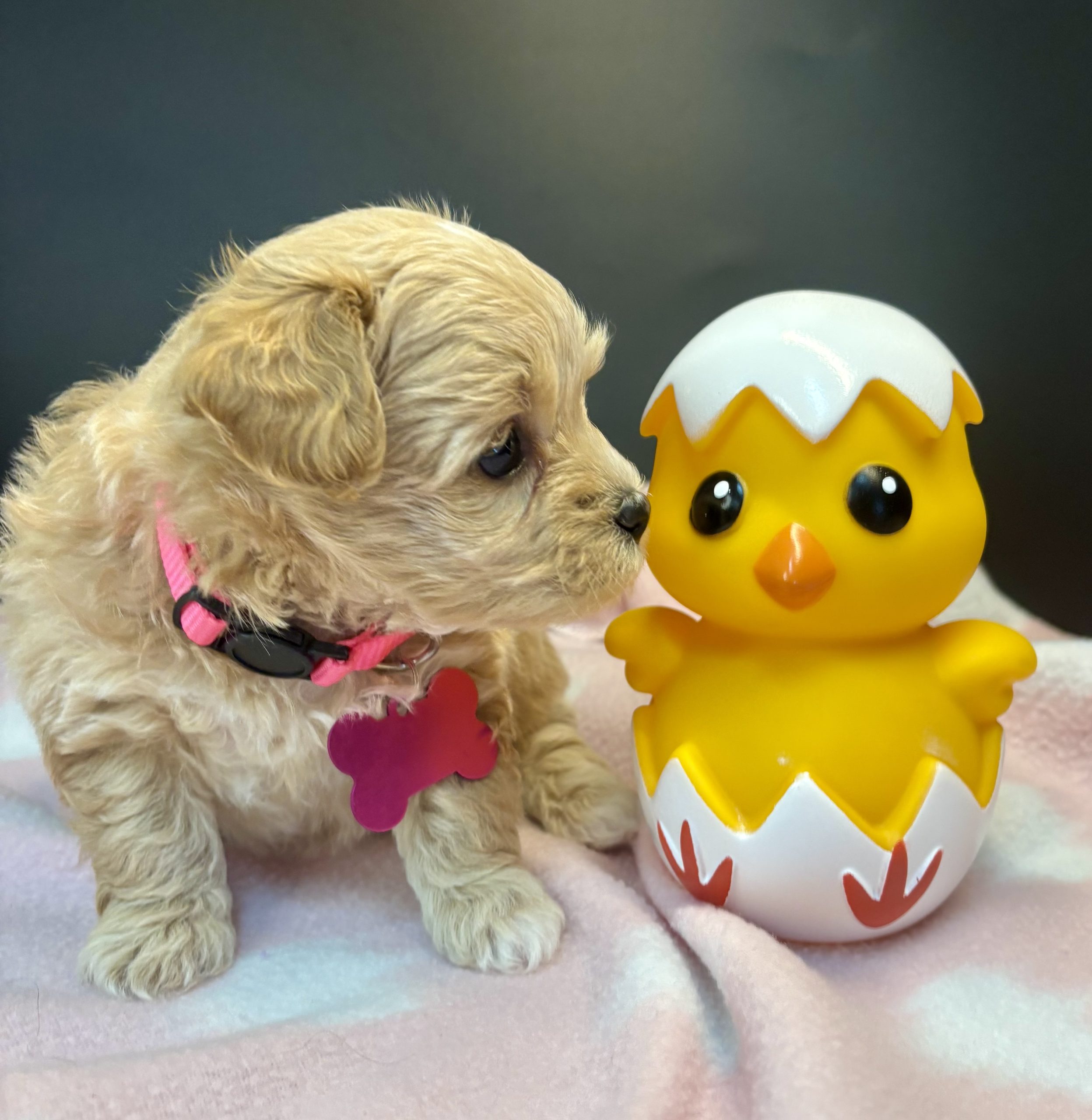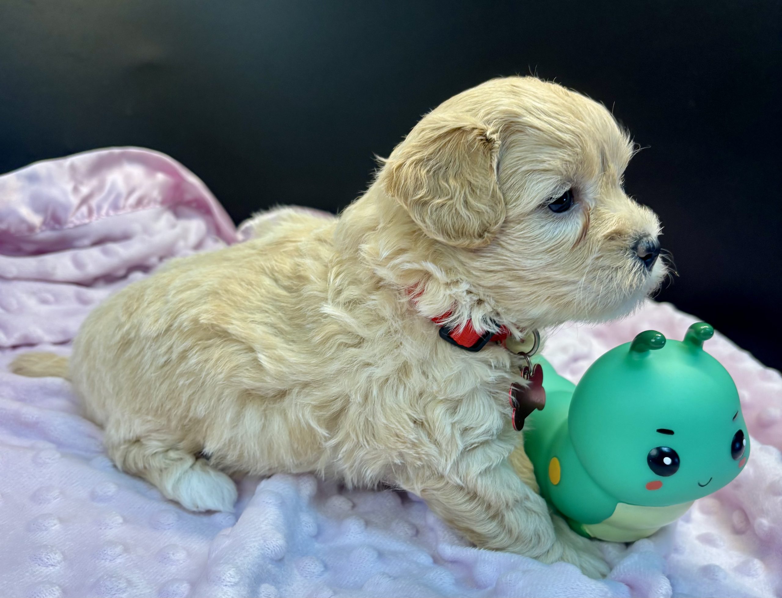 They will come with age appropriate shots and medical care. A certified veterinary health check, one year Health guarantee. Owner’s manual and puppy starter pack.